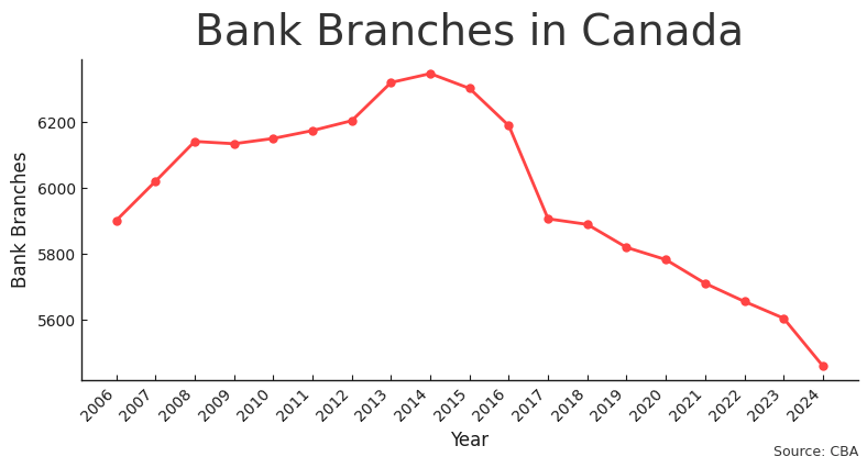 Canadian bank branches vanished at the second-quickest clip this century, according to fresh CBA data. And frankly, it wouldn’t shock many if the pace accelerated.