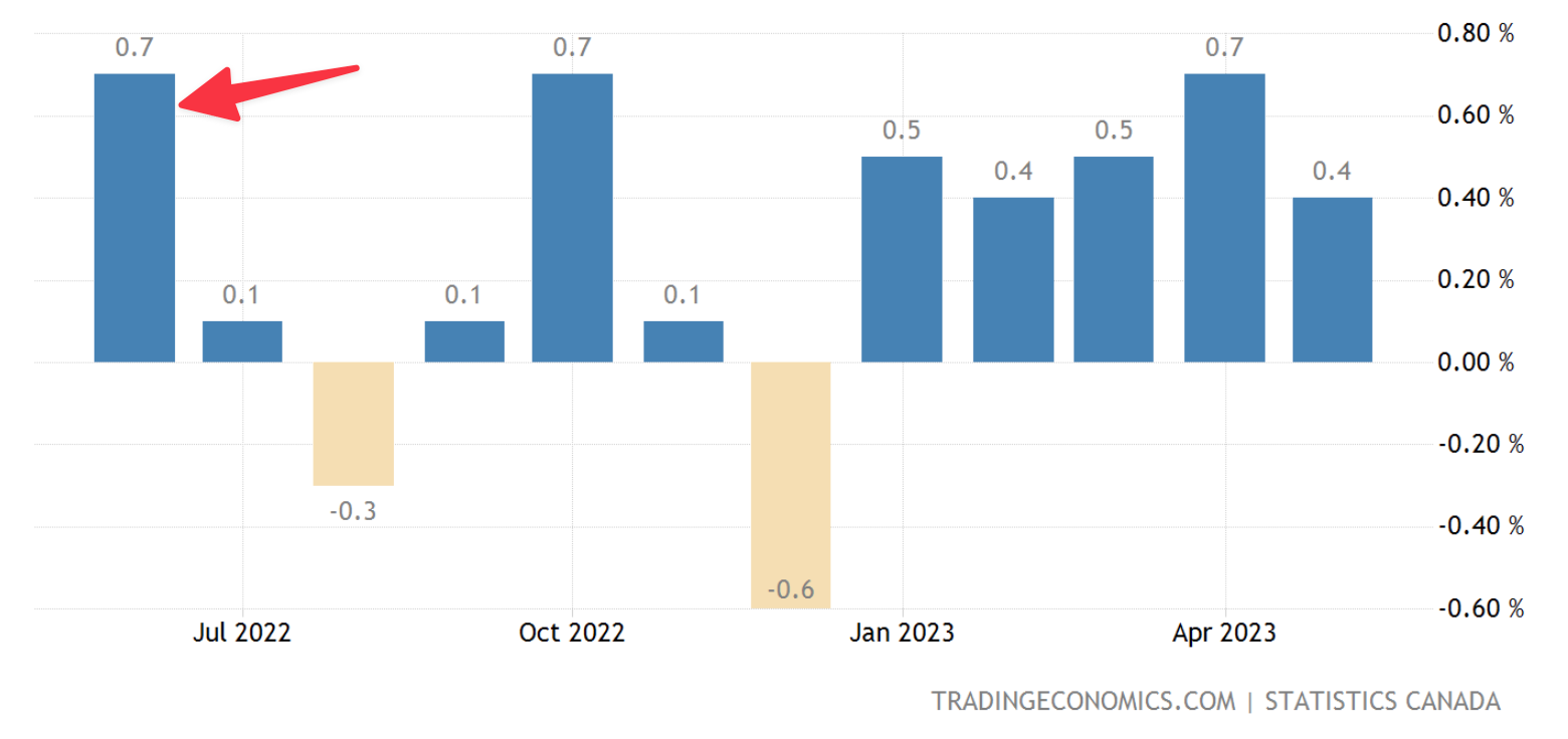 While Bay Street expected it, most laypeople didn't. That's key. Inflation is now in the 3's for the first time in 22 months. That's a significant relief from 8.1% last June. If consumers believe CPI is dropping this fast, they're less prone to aggravate inflation by front-running purchases and demanding higher pay.