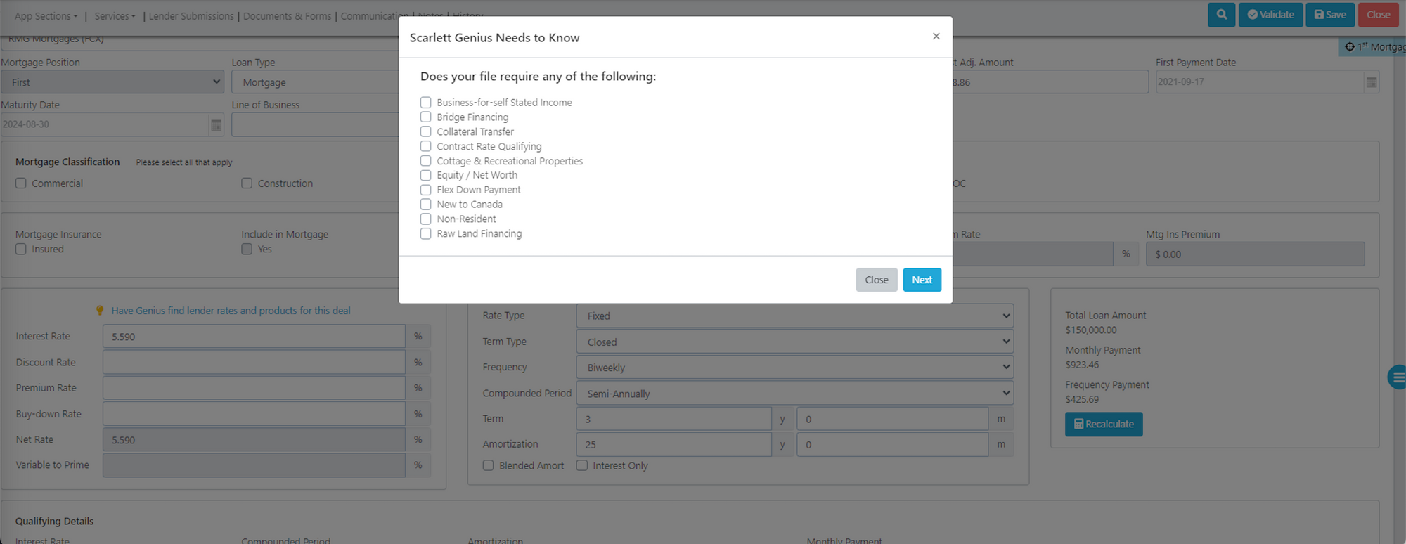 - Like a sommelier of mortgages, Genius starts making recommendations as soon as you give it parameters (the minimum parameters are the deal's income, home value and mortgage amount). It fine-tunes its recommendations as you pull the credit score and enter the amortization, closing date, occupancy status, term type, province, and deal type.